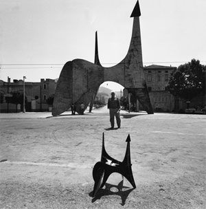 Alla mostra però non c’erano solo i mobili, ma anche una scultura piantata per terra, solida e industriale: un cavallo di ferro freddo, aguzzo e svettante, quasi uguale – forse solo più piccolo – a quello che sta alla stazione di Spoleto e che ne è il simbolo. Sì, quel cavallo di Calder alla stazione è il simbolo della città dove sei nata e ogni volta che parti o torni passi da lì, da quel gigante buffo animale messo a guardia di una rotonda. Con la macchina bisogna passarci attorno, stando attenti a non sfiorarla quella groppa stilizzata di ferro nero. Ma una volta un ragazzo di Spoleto invece di fare il giro ci è passato sotto come si passa sotto un ponte, e la macchina che stava guidando non era sua ma della scuola guida, e in quel giorno c’era l’esame di pratica e così è stato bocciato e si è arrabbiato tanto, ma proprio tanto.