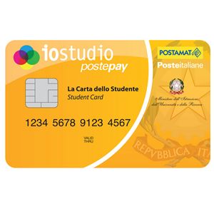 Da quest’anno, la carta dello studente “Io Studio”, consegnata dal MIUR attraverso le scuole a tutti gli studenti del primo anno degli istituti superiori, non è più una semplice tessera per avere sconti negli esercizi convenzionati bensì una vera e propria carta di credito, valida per 5 anni. Si chiama “Io Studio Postepay” ed è una carta prepagata ricaricabile nominativa, che si può utilizzare per acquisti fino a 2500 euro annui e prelievi fino a 1000 euro annui.