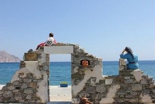 Quello che c’è di strano in Olympos è la sensazione indefinibile di qualcosa di grave, che ti prende dopo appena qualche minuto che sei sceso dalla macchina e ti sei incamminato per quelle viuzze in pendenza. Ma ho capito da cosa dipende. Cioè credo di averlo capito. Se sei a Olympos il sentimento che dopo un po’ ti attanaglia è che non ci siano più mediazioni di oggetti familiari e conosciuti, di macchine e rumori e luci, tra te e l’universo intero. Vale a dire tra te e l’estensione sterminata dello spazio e del tempo. È soprattutto il silenzio che innesca un’emozione basilare, o meglio l’emozione di una percezione basilare. Ci devi tornare e ritornare, ci devi pensare un bel po’ prima di capire una cosa semplice e ovvia: Olympos ancora rappresenta – non ostanti i (pochi) ristoranti e le (poche) botteghe per turisti e non ostante la luce elettrica – la condizione in cui ha vissuto homo per la maggior parte della sua storia, preistoria compresa: silenzio e terrore per la non-spiegabilità del mondo e, la notte, misteriose luci nel cielo. Suppongo che sulle prime, cioè intorno all’800 dopo Cristo, la città si appoggiasse (per proteggersi dal vento? per nascondersi agli incursori?) sul crinale della cresta di monte che affaccia su una profonda valle interna. E che solo in un secondo momento si sia timidamente affacciata anche sul versante marino, non senza prima aver costruito una fila interminabile di mulini a vento in cresta, come se non fosse possibile centralizzare in pochi impianti la produzione della farina. Ti assale il pensiero delle tante vite che si sono consumate qui, nascoste tra queste montagne, interamente assorbite nel fare cose che servono per vivere, nel trarre sostentamento dalla poca terra sassosa e terrazzata della vicina valle di Avlona e degli infiniti terrazzamenti, ormai abbandonati da secoli, che si estendono verso nord sui fianchi dei monti, fino allo stretto di Sarìa e oltre, fino ad Argos…