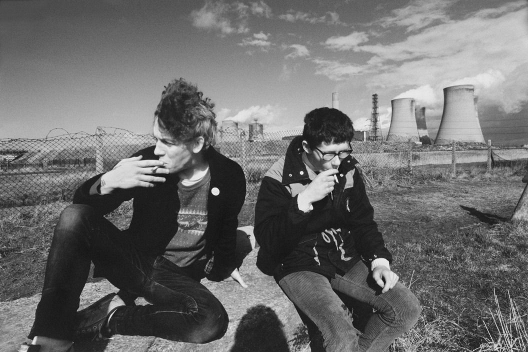 Siamo a Widness, un importante polo chimico del nordest dell’Inghilterra. La foto racconta l’inverno della classe operaia, la noia, la disoccupazione, la miseria, sullo sfondo di un paesaggio industriale. Si tratta di un fotoreportage di Peter Marlow del 1982. Due teenager disoccupati si erano tolti la vita nel 1981 perché erano disoccupati. “Cosa ci resta da vivere se non abbiamo un lavoro?”, avevano scritto. No future: non è solo una posa punk, per la classe operaia è una questione concreta, di vita o di morte. Sean e Graeme si suicidano in auto deviando dentro all’abitacolo le emissioni del tubo di scappamento. Marlow si reca nella comunità operaia di Widness un anno dopo, nell’anniversario di quelle due morti, fotografando alcuni amici dei ragazzi suicidi. Nella foto della copertina ritrae Damien (quello a sinistra di chi guarda) e Alan (quello con gli occhiali) nei pressi della centrale elettrica dove i loro amici si sono suicidati. Sono anche loro disoccupati. Damien commenta lamentando che quella di uccidersi è una scelta stupida. Ha una spilla sulla giacca, forse è un attivista: ci sono ragioni per combattere. I due ragazzi non si guardano, sono chiusi nel dolore, è inverno, il vento scompiglia i capelli di Damien, Alan aspira con rabbia la sigaretta. Nei loro volti vedi il no future, leggi le storie delle famiglie working class da cui discendono, immagini il riverbero del fantasma della Lady di ferro che continuerà a incalzare e a perseguitare una generazione di lavoratori britannici. In quei giorni io ero ancora un bambino ma stavo per diventare adolescente, mente le raffinerie dove lavorava mio padre cominciavano a chiudere, mentre i 40mila marciavano a Torino, mentre i minatori inglesi accettavano le sottoscrizioni dei loro compagni operai italiani, mentre guardavamo il calcio inglese in tv e guardando le ciminiere dietro le nostre abitazioni sognavamo posti come Liverpool e Manchester, che nel nostro immaginario erano gemellati con Piombino e Terni, iron town dove prima o poi avrei dovuto lavorare al fianco di ragazzi simili a quelli ritratti in quella foto. Poi è arrivata la Thatcher, e le fabbriche hanno chiuso, e anche le raffinerie. E io non sono andato al professionale ma al liceo (“studia e vattene da qui che non c’è più pane da mangiare”).