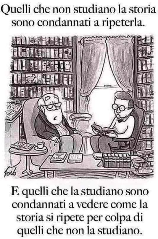 per arrivare al nostro meme: (M) «Those who don’t study history are doomed to repeat it. Yet those who do study history are doomed to stand by helplessly while everyone else repeats it» («Coloro che non studiano la storia sono condannati a ripeterla. Quelli che invece la storia la studiano, sono condannati ad assistere impotenti, mentre tutti gli altri la ripetono»).