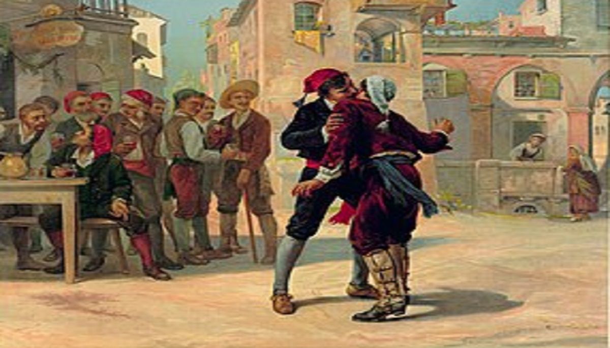 Com’è noto, Verga scrive il dramma Cavalleria rusticana [1] nel 1883, ricavandolo, non senza significative variazioni, dalla novella omonima pubblicata nel 1880 nella raccolta Vita dei campi. Ha già pubblicato I Malavoglia e frequenta un ambiente culturale prestigioso, che, praticamente all’unanimità, lo sconsiglia di mettere in scena l’opera: Boito, Gualdo, perfino Treves, il suo editore, gli profetizzano un fallimento. Verga ha dalla sua il solo Giacosa e, forte del suo sostegno – e di Eleonora Duse nei panni di Santuzza – l’opera va in scena al teatro Carignano di Torino nel gennaio del 1884. È un successo clamoroso: Verga viene addirittura chiamato alla ribalta al termine della rappresentazione, alla quale seguiranno molte repliche in molte città, anche francesi, e la celeberrima riduzione del testo in un libretto d’opera (di Menasci e Targioni-Tozzetti) che avrà la musica di Mascagni (e il lungo strascico di una sgradevole vicenda giudiziaria per i diritti d’autore). Cosa seduce il pubblico borghese e benpensante dell’Italia a teatro? Eugenio Torelli-Viollier, due giorni dopo il debutto, sulle colonne del Corriere della sera spiega le ragioni del successo alla maniera che si è letta in apertura. Al testo drammatico in quanto tale la recensione riserva uno spazio molto ridotto: quello che abbiamo riportato. Per il resto, l’attenzione sembra concentrarsi quasi esclusivamente sulla dimensione sociale della messa in scena: quanto fosse pieno il teatro, dove fosse Verga mentre si svolgeva la rappresentazione, quale la commozione degli spettatori alla esecuzione accurata della signora Duse. Il giornalista punta a esorcizzare le novità dell’opera e a ridimensionarne la portata entro i limiti di una commedia dal color locale. La qualità del lavoro verghiano – insomma – risiederebbe nella ritraduzione del vero: un vero che è tale perché riproduce scene della vita siciliana, non altro. Il pubblico educato e politicamente corretto della Torino postunitaria si impressiona di tanta inaudita brutalità rappresentata senza retorica, senza niente di romantico, addirittura freme e piange di fronte alla catastrofe preveduta; e Torelli-Viollier lo rimanda a casa quasi lusingandolo per aver versato lacrime, gratificandolo con il riconoscimento della sua grande sensibilità. Ma se anche volessimo perdonare al recensore (e al suo pubblico) l’uso ancora incerto e difettoso degli strumenti di interpretazione del verismo, mai potremmo assolverlo dal peccato di omertà e omissioni commesso nel riassumere la vicenda. Ripercorriamola più onestamente.