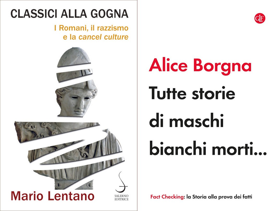 Alla fine dello scorso anno sono stati pubblicati due libri sul tema della cosiddetta “cancel culture”, in relazione però a uno specifico ambito, quello degli studi classici e dell’insegnamento del latino: Mario Lentano, Classici alla gogna. I Romani, il razzismo e la cancel culture (Salerno) e Alice Borgna, Tutte storie di maschi bianchi morti… (Laterza).