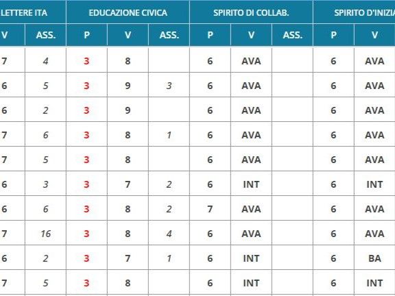 (Queste ultime due voci sono una specificità di recentissima introduzione nella mia scuola, ovviamente non generalizzabile all’intero paese. Tale sperimentazione non nasce comunque dal basso, ma è chiaramente ispirata alle proposte, nate in alto loco, di valutazione delle soft skills. Va precisato che la valutazione attribuita a questi due spiriti non faceva media con il resto e non era obbligatoria. I docenti potevano scegliere di non attribuirla: per la cronaca, io sono stato fra questi).
