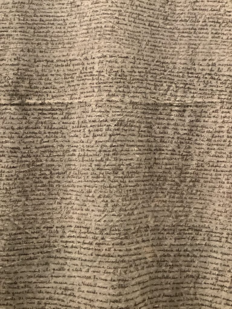 Per quanto mi sia soffermata unicamente su testimonianze al femminile, moltissime sono anche le scritture di uomini raccolte nell’Archivio. A Vincenzo Rabito, ragazzo del ’99, bracciante analfabeta che negli ultimi anni di vita redige una fluviale autobiografia, è dedicata la seconda sala del Piccolo Museo: il suo diario, Terra matta (a cura di L. Ricci e E. Santangelo, Einaudi, 2007), viene battuto a macchina su più di mille fogli privi di margine e costellati di segni di interpunzione usati senza alcuna conoscenza delle norme ortografiche! Vincenzo vi racconta le vicissitudini di una vita nella quale la storia individuale – le umili origini, il matrimonio infelice, il riscatto grazie ai figli – e quella collettiva – la partecipazione al primo conflitto mondiale, il flagello del fascismo, la ricostruzione – sono strettamente intrecciati sotto il segno della “tradizione degli oppressi”. L’incipit offre un assaggio tanto dell’impasto linguistico quanto dello sguardo autoironico di Vincenzo: