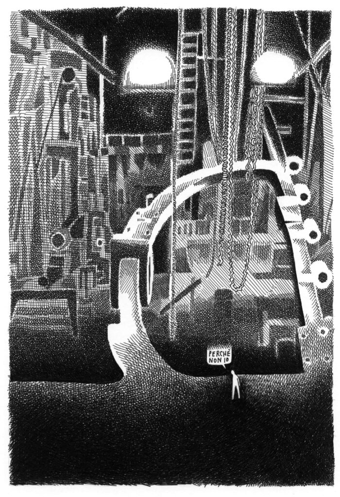 R. Non sento questo problema. Ossia: probabilmente ho incanalato la mia necessità di raccontare attraverso il disegno proprio perchè è un’attività artigianale. Uso spesso il tratteggio: penso che anche mia mamma tratteggiasse con il filo, quando cuciva le giacche.