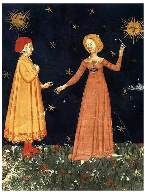 Questo è il risultato dell’impegno di una donna. Con lei Dante attraverserà tutto il paradiso e imparerà una gioia che non è l’approdo del prestigio intellettuale o del desiderio sensuale, ma la percezione della propria piccolezza di fronte alla grandezza dell’Essere. Per giungere a questo risultato Beatrice ha assunto i tratti di una donna che rispetto al Femminile medievale ha tutt’altre caratteristiche: Beatrice parla (“Le donne tacciano” diceva san Paolo), spiega, rimprovera, indirizza, discute di teologia e di politica, ciò che l’immaginario medievale, intriso di patriarcato, avrebbe ritenuto inimmaginabile. Il fatto che tutto questo viva nel testo letterario non elimina che uno scenario del genere possa essere stato partorito dalla mente di un maschio adulto del Medioevo che era partito da una base erotica: Beatrice era bella ed egli la desiderava.