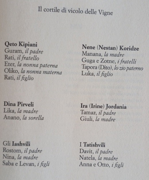 Il vicolo delle Vigne, nel cuore di Tbilisi, è il microcosmo di affetti, rivalità, relazioni che la Storia trasforma cinicamente in un detonatore, scagliandone con violenza gli abitanti oltre i confini circoscritti del quartiere, eliminandone gran parte, disperdendone i superstiti. I legami fra queste persone sono tali da non consentire ad alcuna fra loro di salvarsi o di perdersi da sola. Sono legami di sangue, d’amore, di affari, di vendette consumate o incompiute; affinità intellettuali e complicità criminali; promesse solenni e patti incresciosi; ma comunque legami, indissolubili anche quando la Storia interviene a toglierne di mezzo i contraenti. Sono gli eventi della Storia – mai il Caso né il Caos – a forzare il perimetro di un vicolo, di un quartiere, di una città, di un’intera nazione. Non c’è posto in questa narrazione per la fatalità: per ogni accadimento c’è un responsabile, che decide in base a criteri variabili (amore, lealtà, profitto, orgoglio, potere…) ma mai casuali. Le decisioni di uno determinano senza eccezioni le sorti degli altri, anche degli innocenti, perché «il mondo non ha perdonato quel talento per l’innocenza» (p.534) che è ancora non solo dei bambini e delle ‘anime belle’, ma di chi sceglie consapevolmente di non nuocere e per questo incredibilmente finisce per nuocere – e non solo a sé.